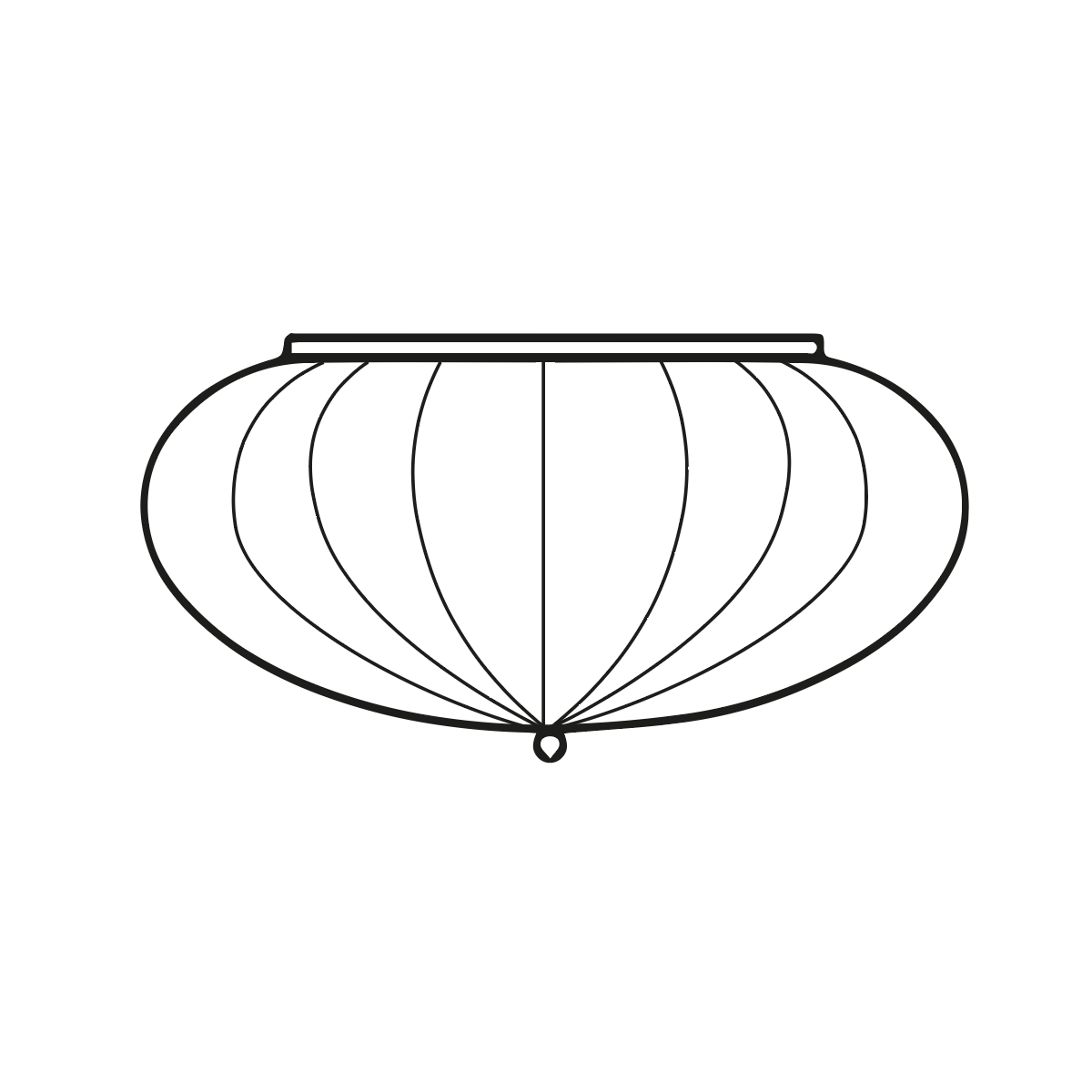 Fine vetro soffiato riempie una gabbia realizzata sul disegno di una sfera fortemente compressa ai poli.
