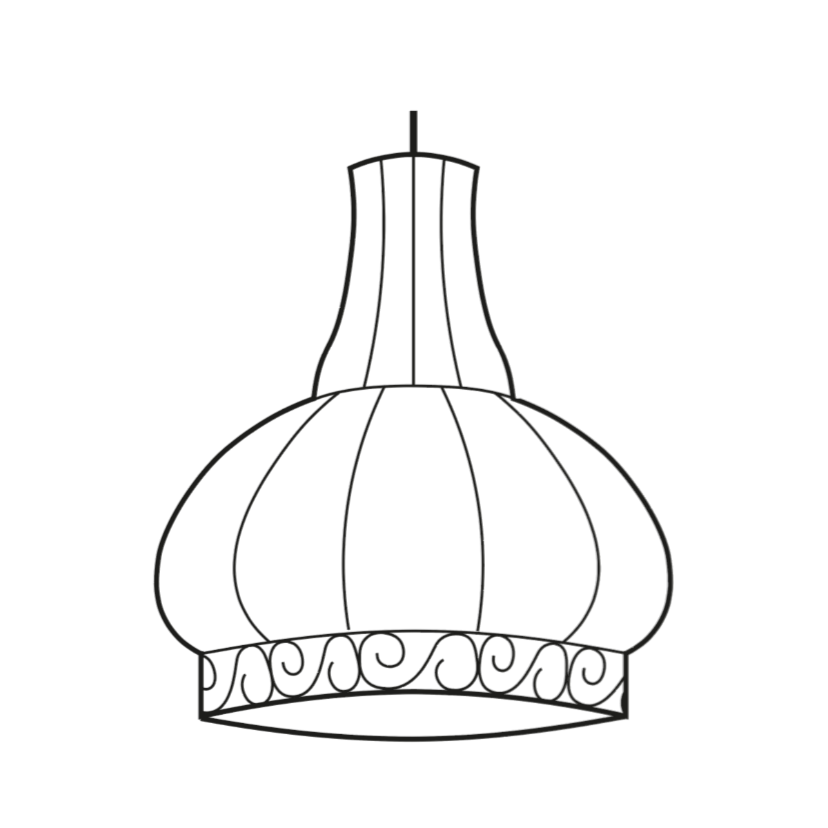 La gabbia a forma di corona, aperta alla base ornata da ricci, si allunga in altezza nella parte superiore plasmando il vetro ai suoi movimenti.