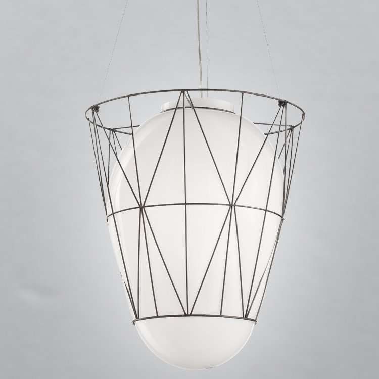 Avvolto in una gabbia unica nel suo genere, sviluppata in un incastro geometrico di fili, il vetro soffiato prende forma in questa rete aperta nella sezione inferiore. Il vetro e libero di scendere ed estendersi, anche fuoriuscendo dalla struttura, a piacimento del maestro vetraio e scandito della temperatura del bolo di vetro. Una lavorazione peculiare che consente di ottenere opere esclusive.