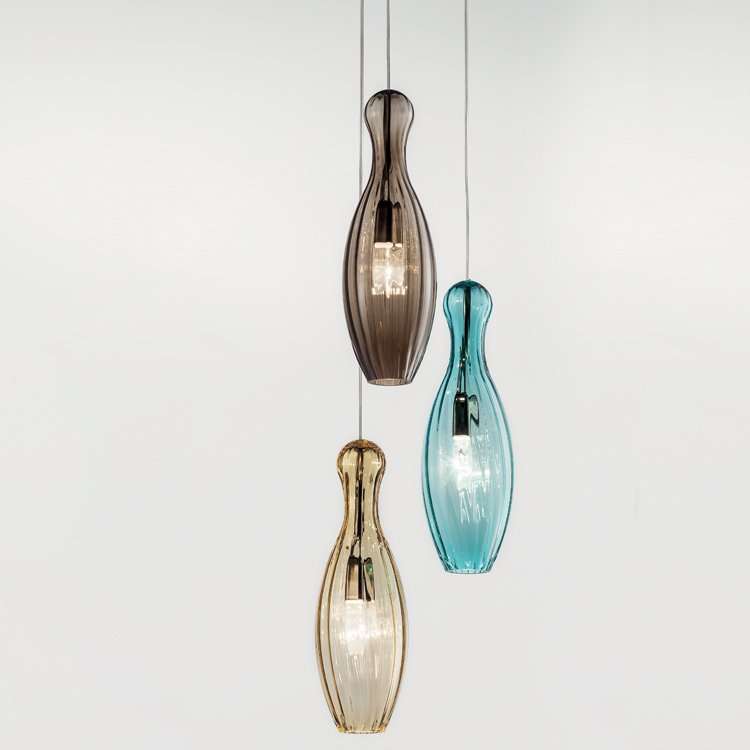 Con Birillo la creatività non ha limiti: le molteplici finiture del vetro soffiato con differenti tecniche, la possibilità di composizioni sempre originali, rendono questo lume costantemente attuale e poliedrico.