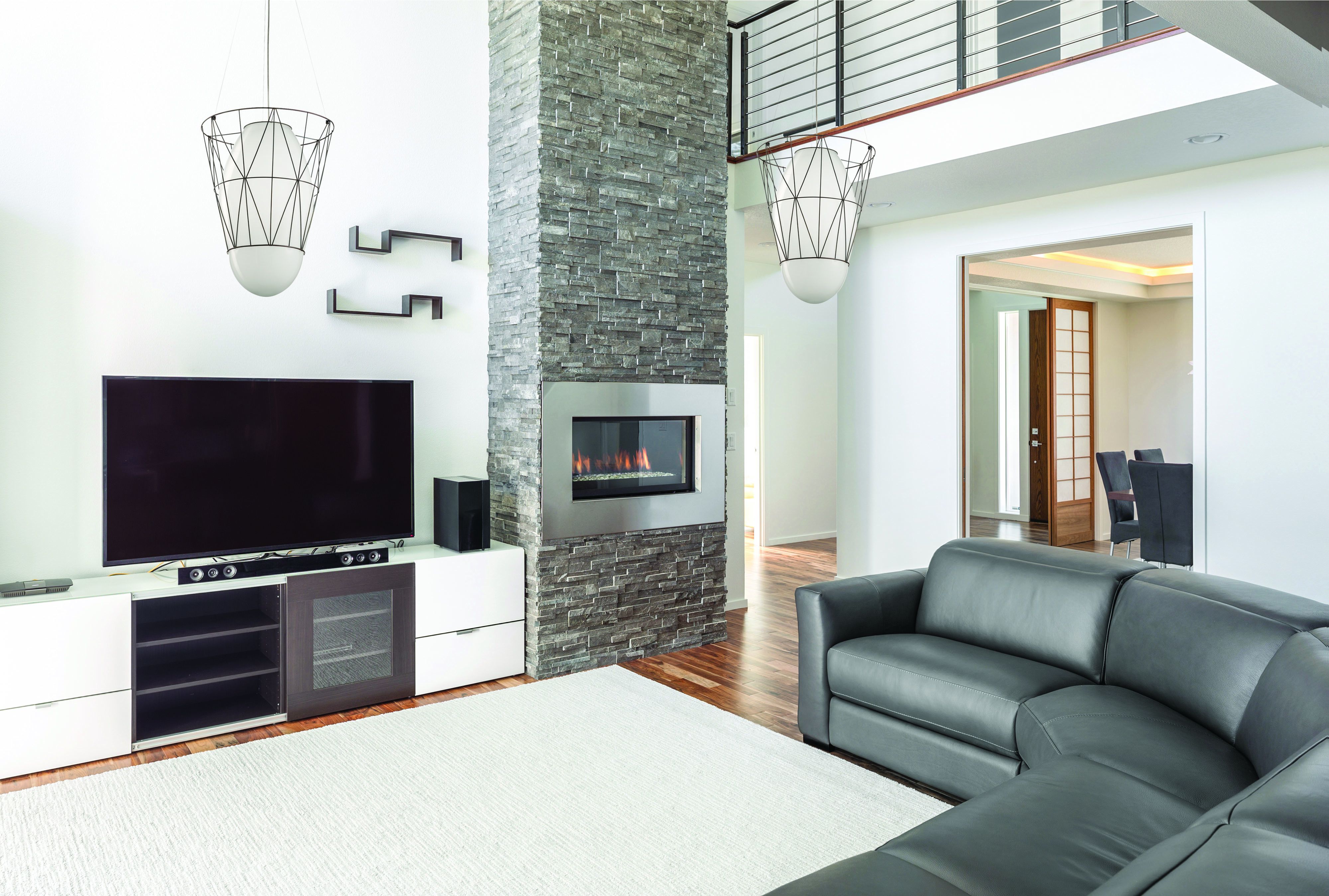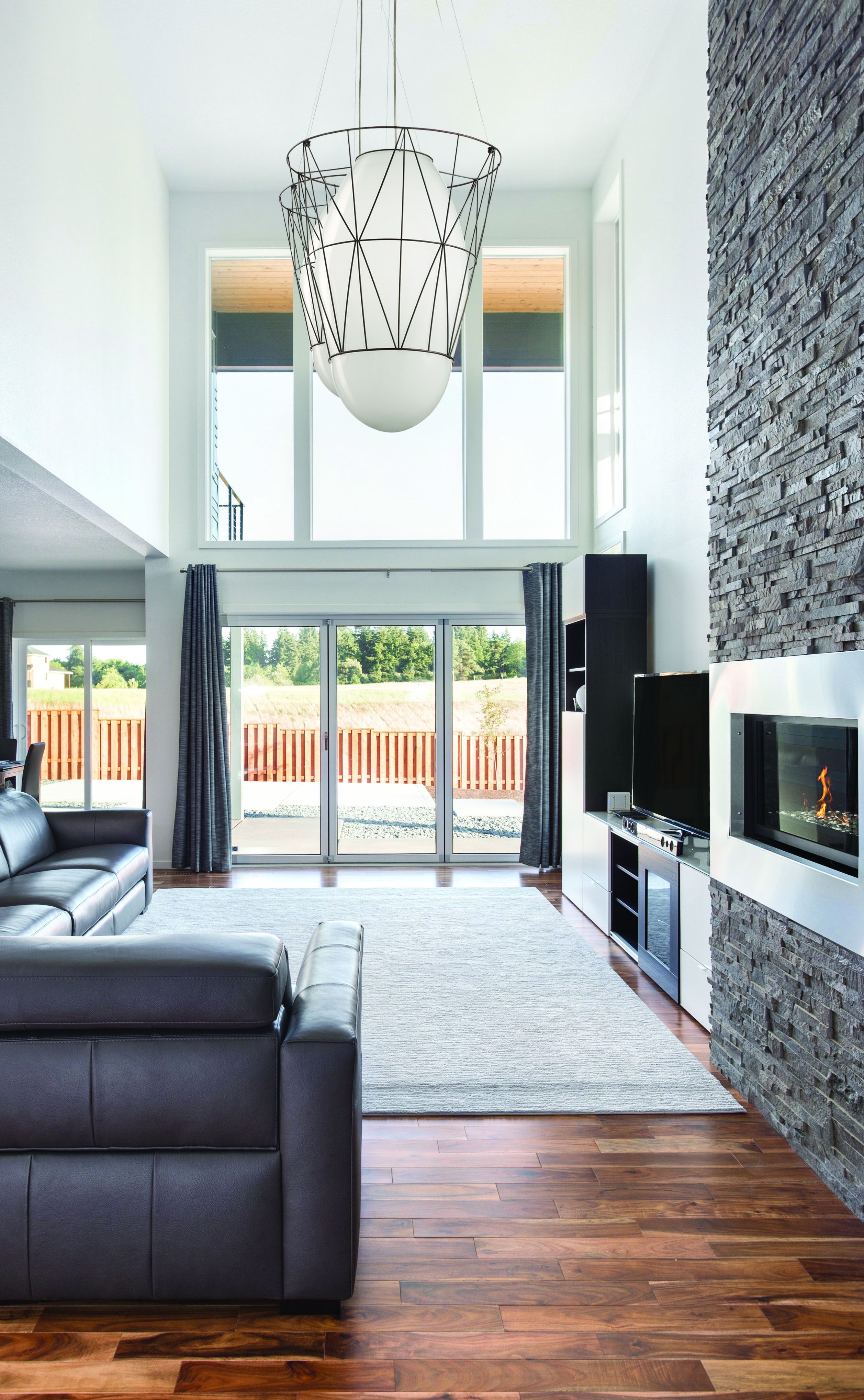 Una villa ristrutturata che accoglie la luce dal paesaggio attorno a sé. Oltre ad essere illuminata dalla luce naturale grazie alle ampie finestre, sono stati inseriti due lampadari imponenti a vista d’occhio ma allo stesso tempo leggeri.