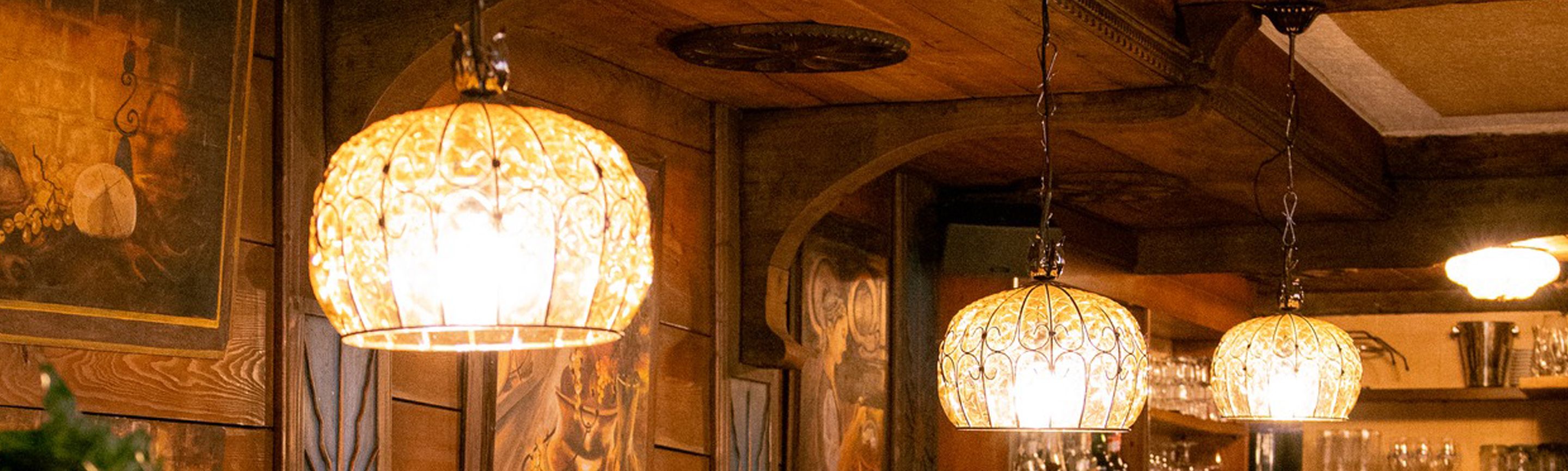 Per esaltare l’atmosfera calda, accogliente e ricca di carattere che da sempre contraddistingue il locale, sono state scelte le nostre lampade a sospensione San Tomà. Realizzate secondo l’antica arte della soffiatura del vetro veneziano, queste lampade si distinguono per le loro superfici in vetro finemente lavorate e per le eleganti strutture geometriche. Il loro design, sobrio ma sofisticato, si integra perfettamente con l’arredamento tradizionale del ristorante, contribuendo a creare un ambiente armonioso, raffinato e dal fascino senza tempo.