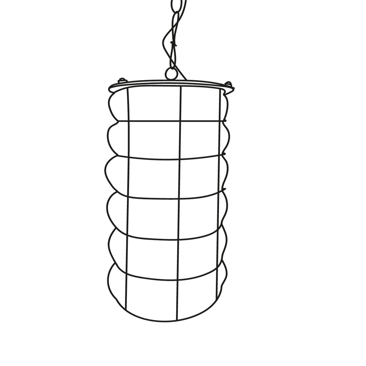 Figura longilinea, corpo cilindrico, una gabbia metallica che guida la forma quadrata attraverso l’incontro dei suoi filamenti.