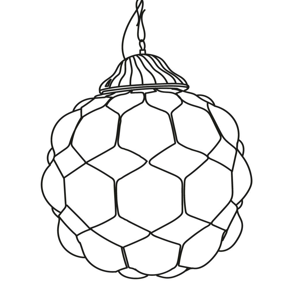 Ispirata dalle forme del carapace delle tartarughe, Galapagos sembra prendere vita grazie al movimento del vetro soffiato ingabbiato nel reticolo di linee metalliche precise e simmetriche che le danno forma.