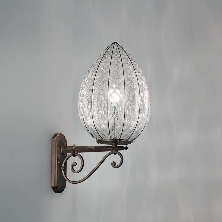 Vetro soffiato con tecnica balotton a impreziosire la raffinata creazione.