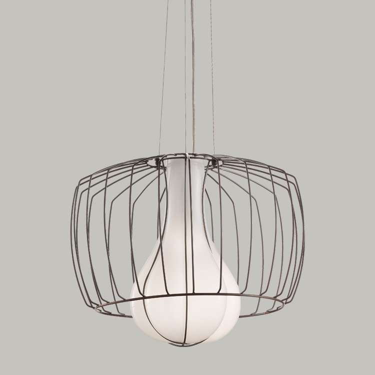 Lineare e distinta, la gabbia metallica indirizza la morbida fuoriuscita del vetro in maniera regolare.