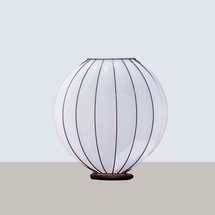 L’intramontabile volume sferico viene reinterpretato da Siru con la preziosa tecnica del vetro ingabbiato dove i prodotti prendono vita dal proprio unico stampo, che convive con la lampada stessa dettando le forme alla materia.